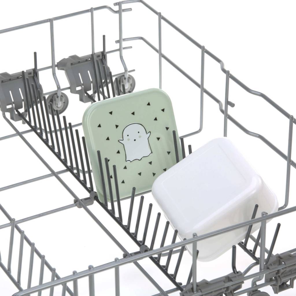 Booooo! De schattige kleine spookje die de Little Spookies-collectie siert, nodigt je uit om samen een hapje te eten! De vierkante snackbakken zijn minimalistisch van ontwerp en gemaakt van hoogwaardig kunststof en zijn vaatwasmachinebestendig. De bakjes worden geleverd als een handige set van drie, in drie verschillende formaten die in elkaar kunnen worden gestapeld wanneer ze niet worden gebruikt.