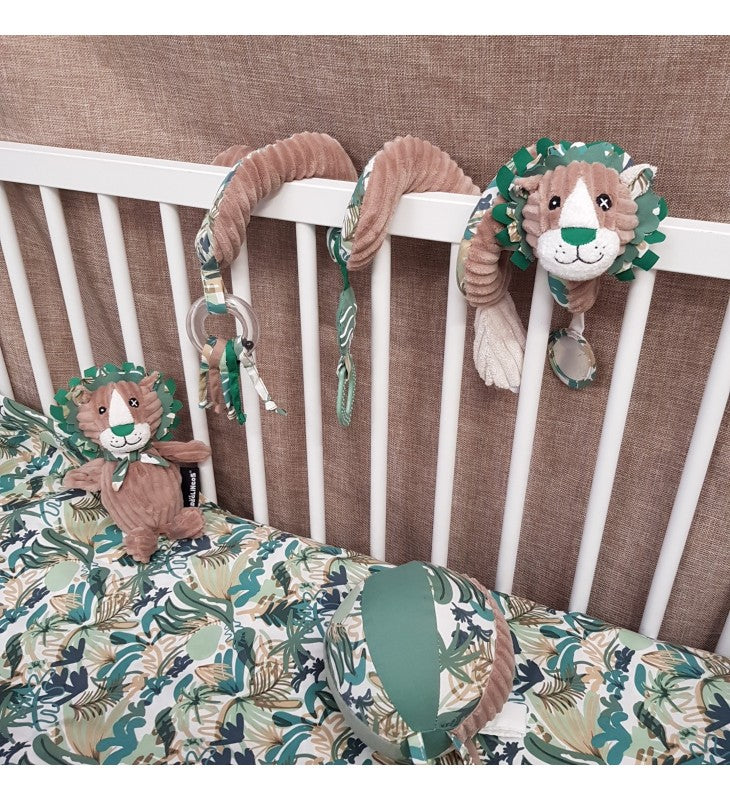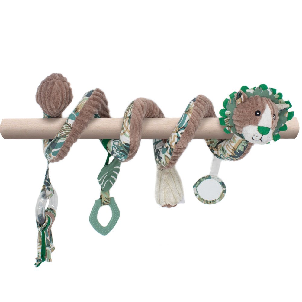 Stimuleer de zintuigen van jouw baby met deze leuke activiteiten spiraal. Deze leuke activiteitenspiraal Jelekros de leeuw nodigt kleine ontdekkers uit om te ontspannen, leren en ontdekken. De spiraal kan eenvoudig om een box, autostoel, kinderwagen of loopstoel worden bevestigd. deze activiteitenspiraal Leeuw is voorzien van sensorische speeltjes met; ritselend papier, een pouet-pouet (piep speeltje), een kleine spiegel en een bijtring.