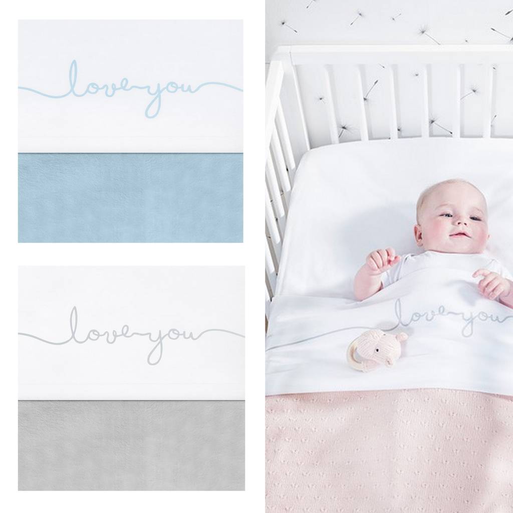 Mooi lakentje met de tekst love you van Jollein. Het lakentje is gemaakt van 100% katoen en is verkrijgbaar in de afmetingen 75×100 cm en 120×150 cm. Het lakentje is verkrijgbaar in de kleuren lila, grijs, blauw, groen en roze. Dit product mag worden gewassen op een temperatuur van maximaal 40 graden. Het lakentje in de droger en worden gestreken.