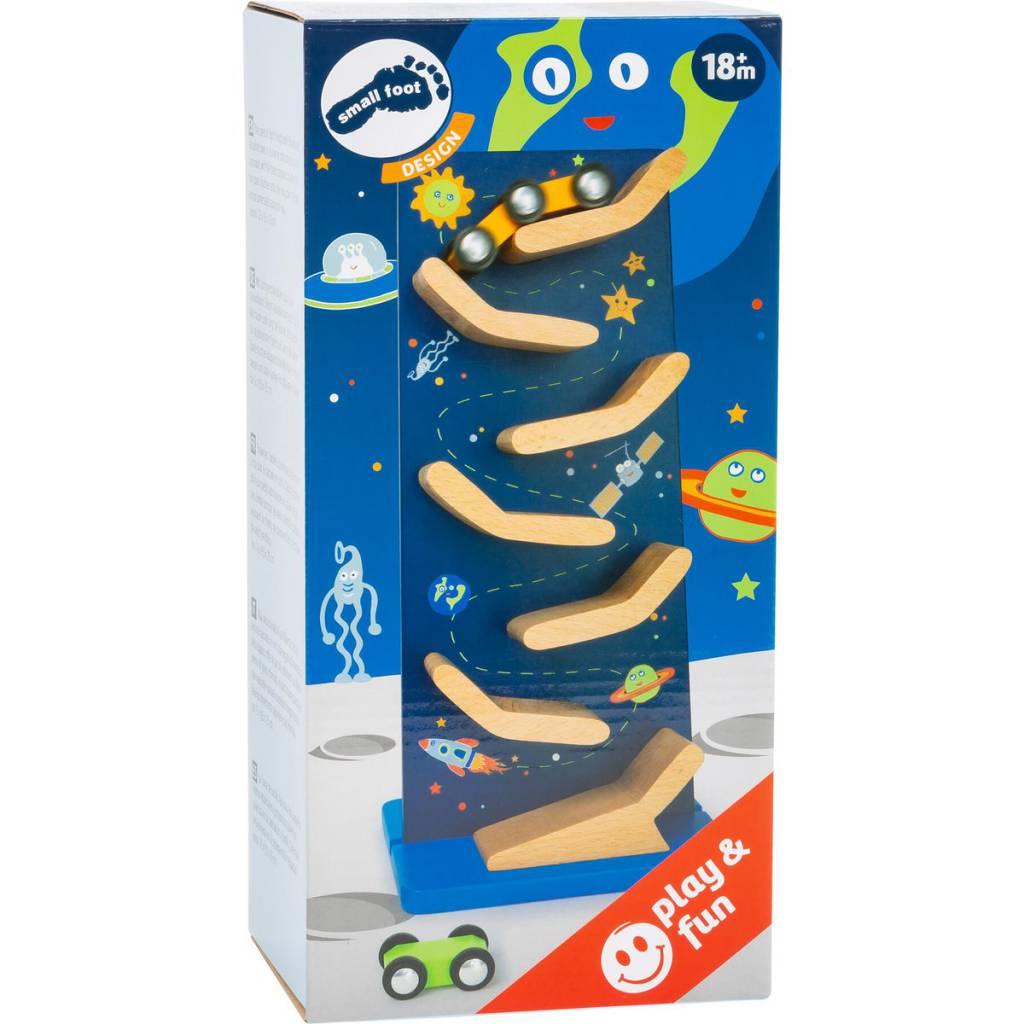 Van boven naar beneden, met de snelheid van het licht door deze autobaan! Deze trapsgewijze toren van hout met een ruimtelook bezorgt kleine astronauten onbeperkt plezier wanneer de twee spaceshuttles over de racebaan razen en grappige salto’s maken. De cascadetoren fascineert kleine astronauten en zorgt voor galactisch plezier in de kinderkamer. Welk ruimtevaartuig wordt de volgende keer op een adembenemende ruimtemissie gestuurd?
