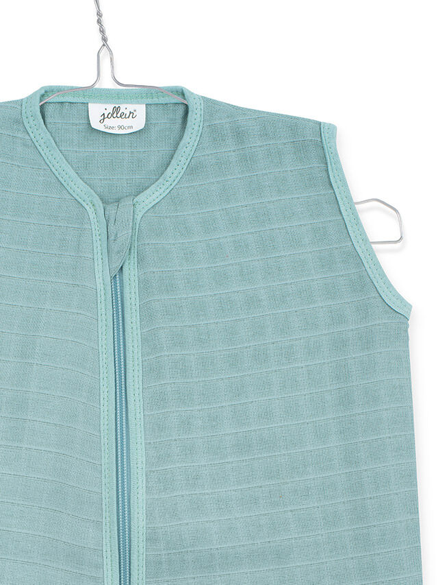 Deze heerlijk luchtige hydrofiele slaapzak groen van Jollein is ideaal voor de warmere zomermaanden. De zachte hydrofiele stof heeft als belangrijke kenmerk dat het ademend, veel vocht op neemt en de stof is lekker zacht voor de babyhuid en heeft een TOG-waarde van 0.5.